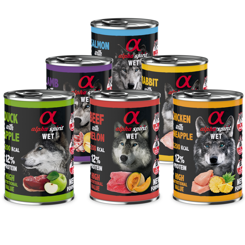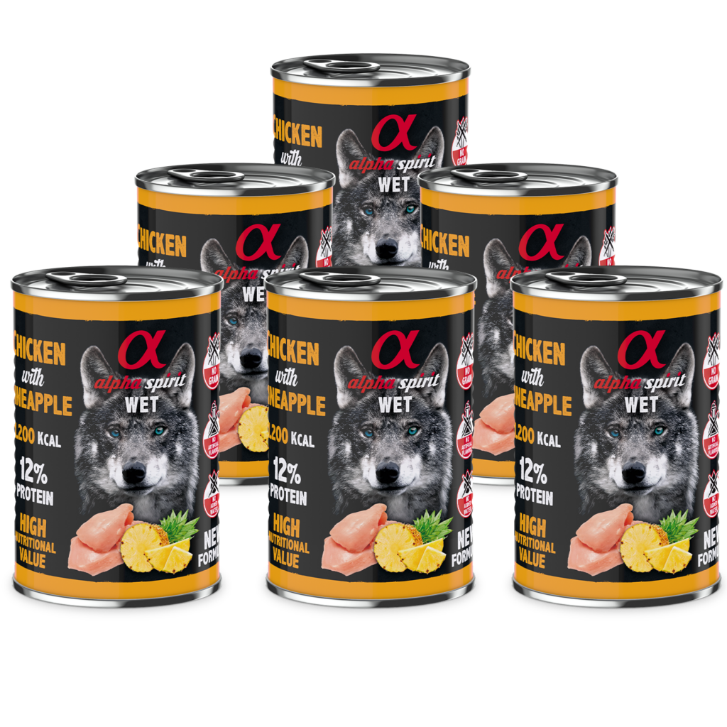 Aktionspaket bestehend aus 6 Dosen unserem leckeren alpha spirit Nassfutter 12% Protein